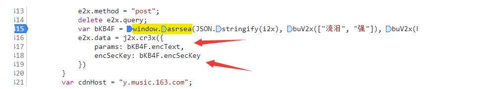 在window.asrsea这一步进行加密 然后赋值给下面的params