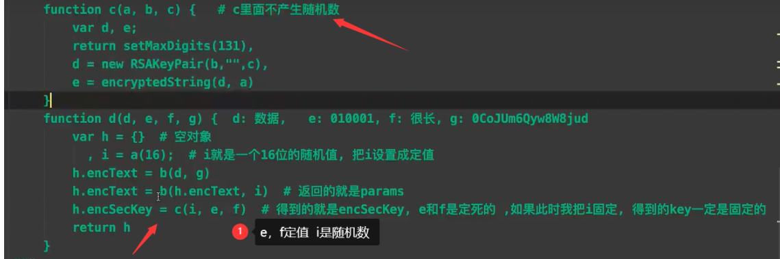 因为c里面是加密 并且不产生随机数 所以如果这里把i写成定值 那么encSecKey 就是定值