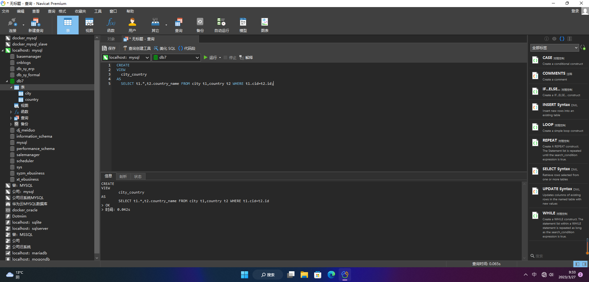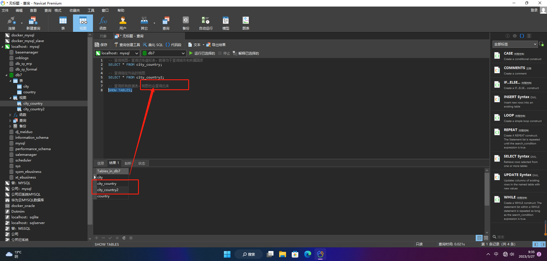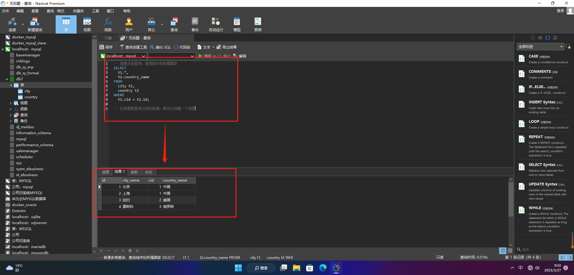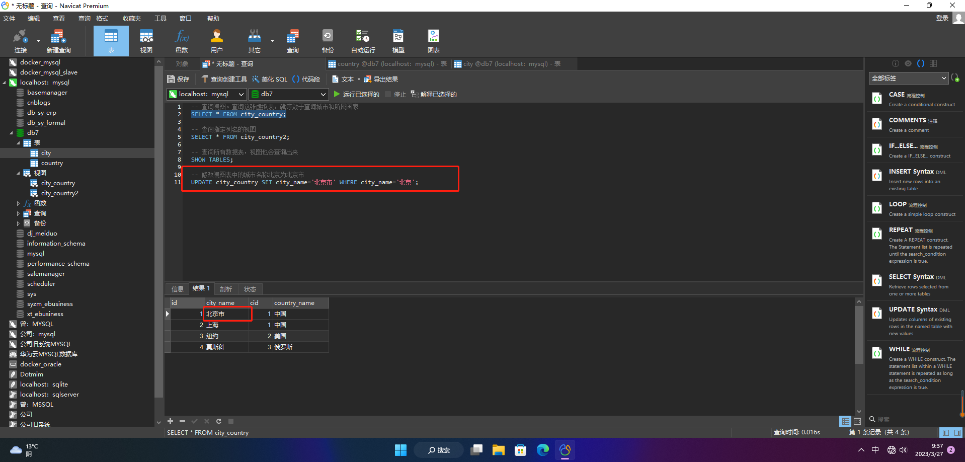 -- 查询视图。查询这张虚拟表,就等效于查询城市和所属国家