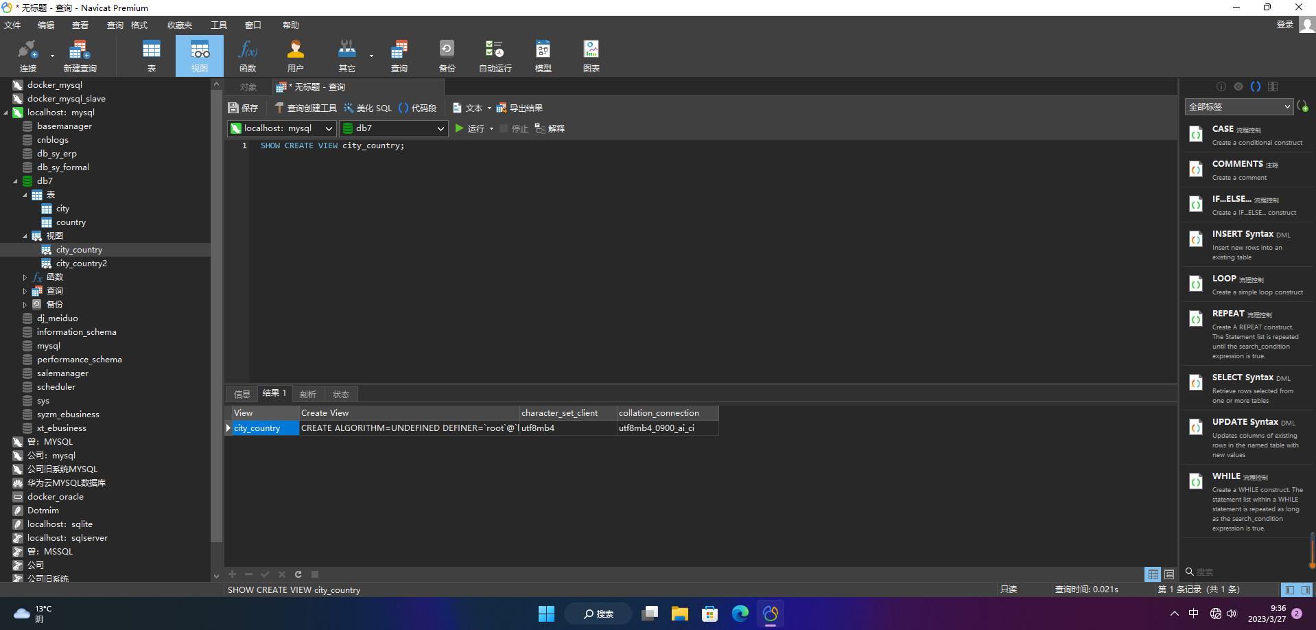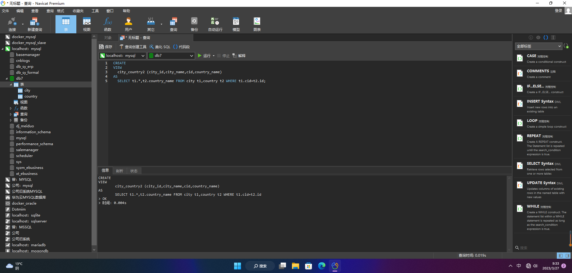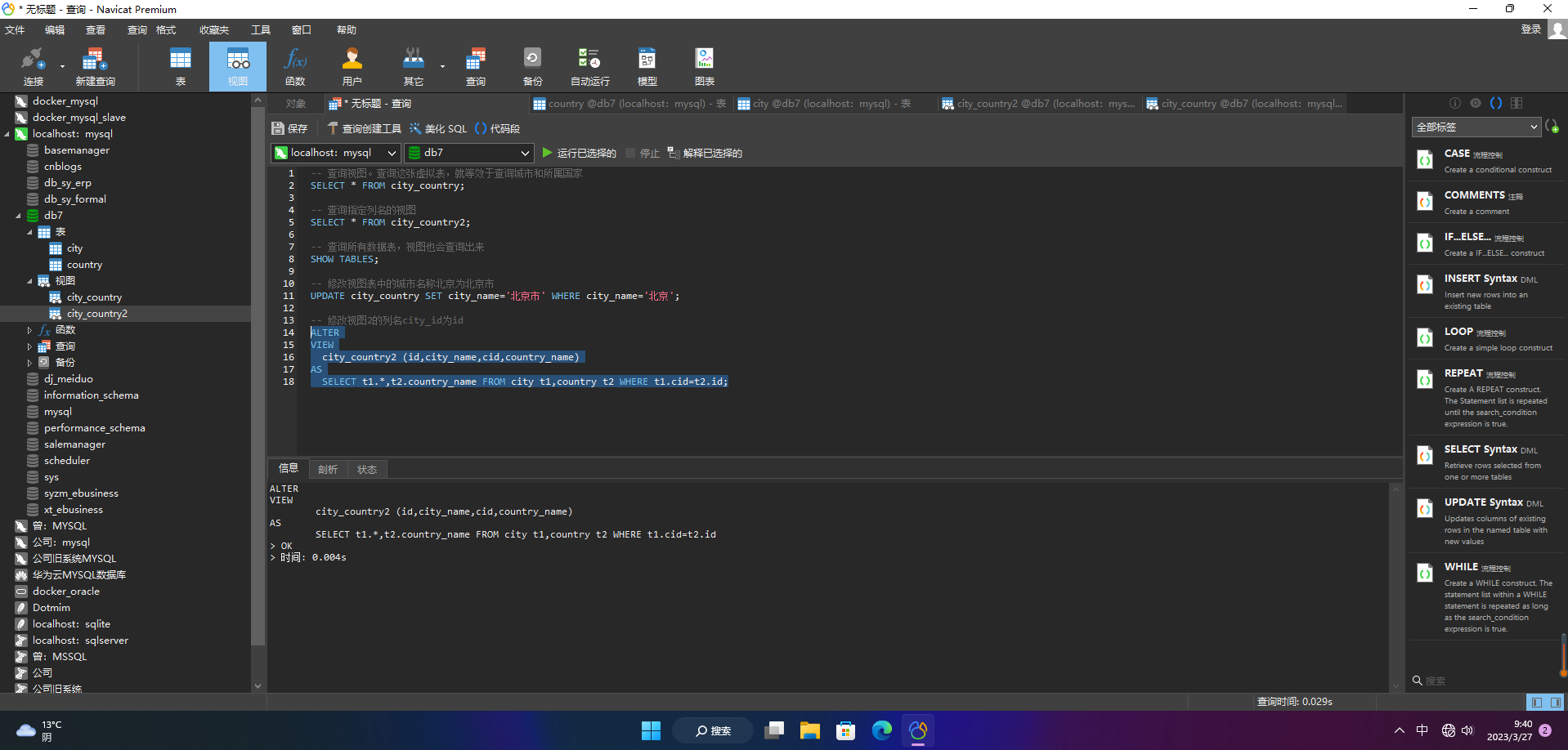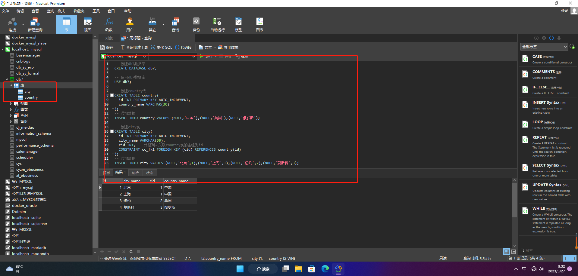 -- 查询视图。查询这张虚拟表,就等效于查询城市和所属国家