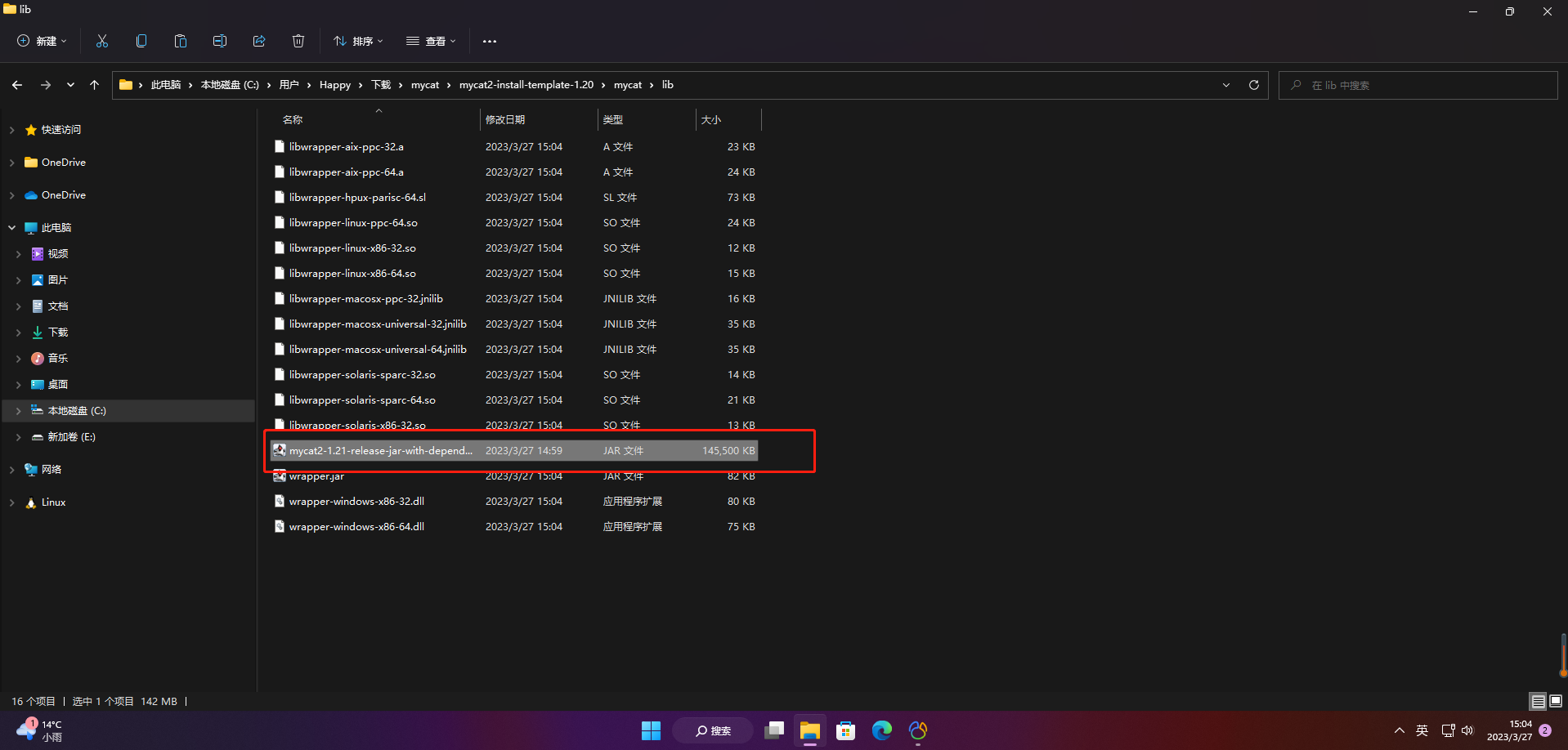 下载好的运行框架解压,把mycat2的jar包放在运行环境框架目录下的lib里