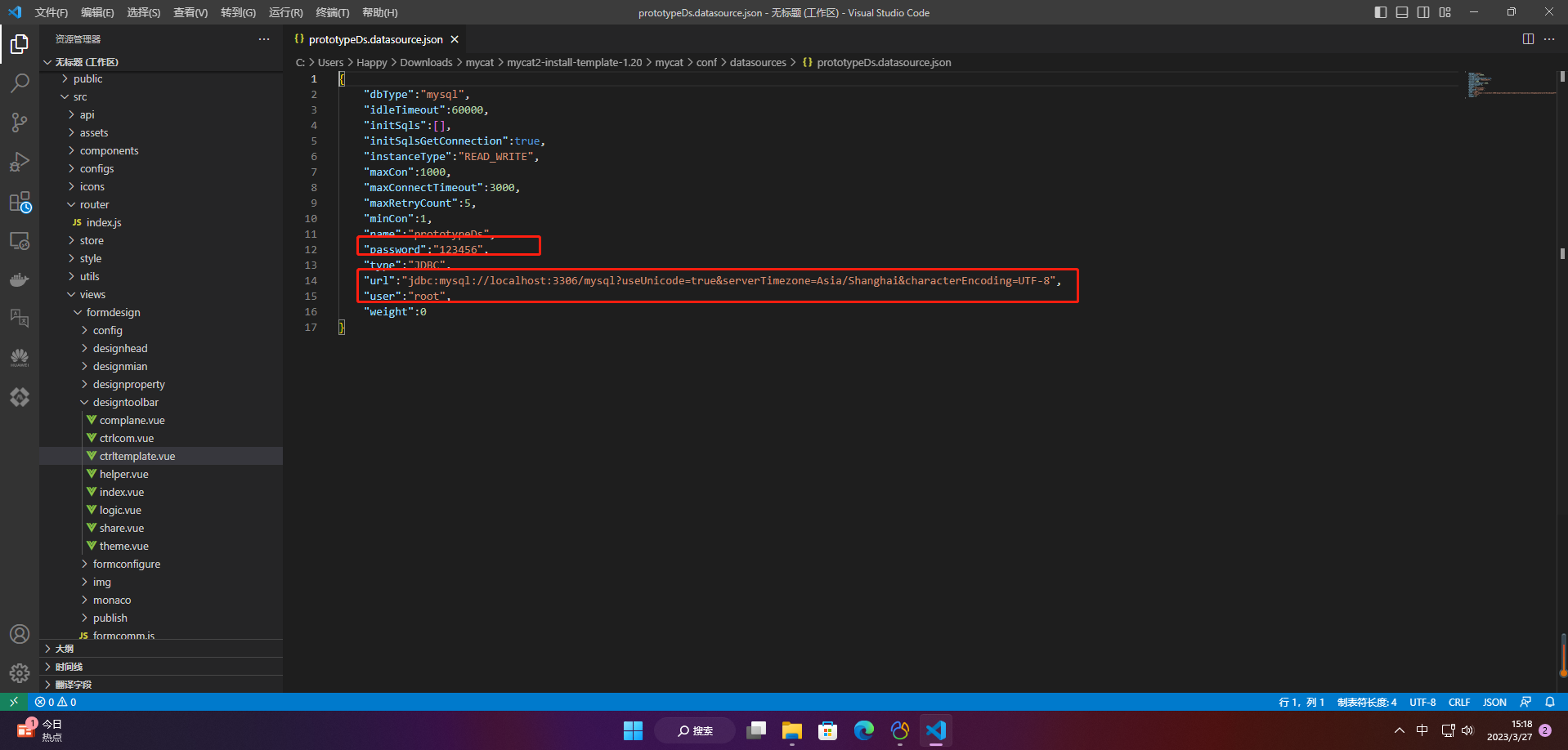 目录地址:mycat\conf\datasources下prototypeDs.datasource.json