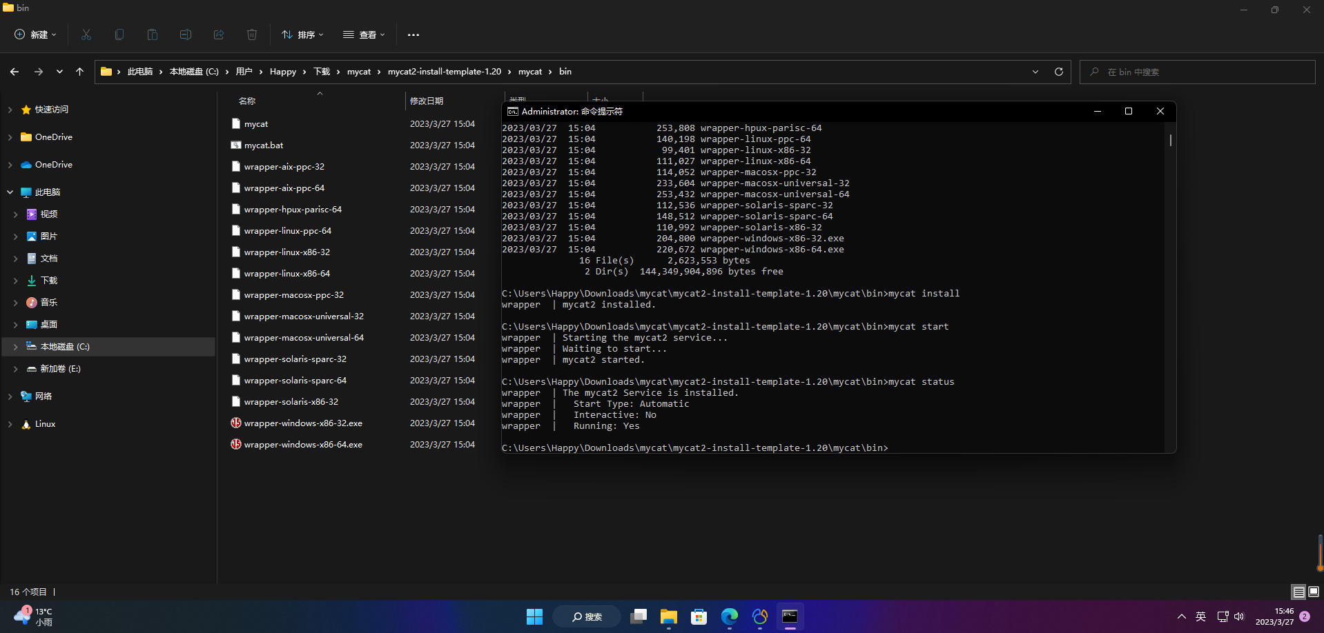 windows 下直接启动 mycat\bin 目录下的mycat.bat就行