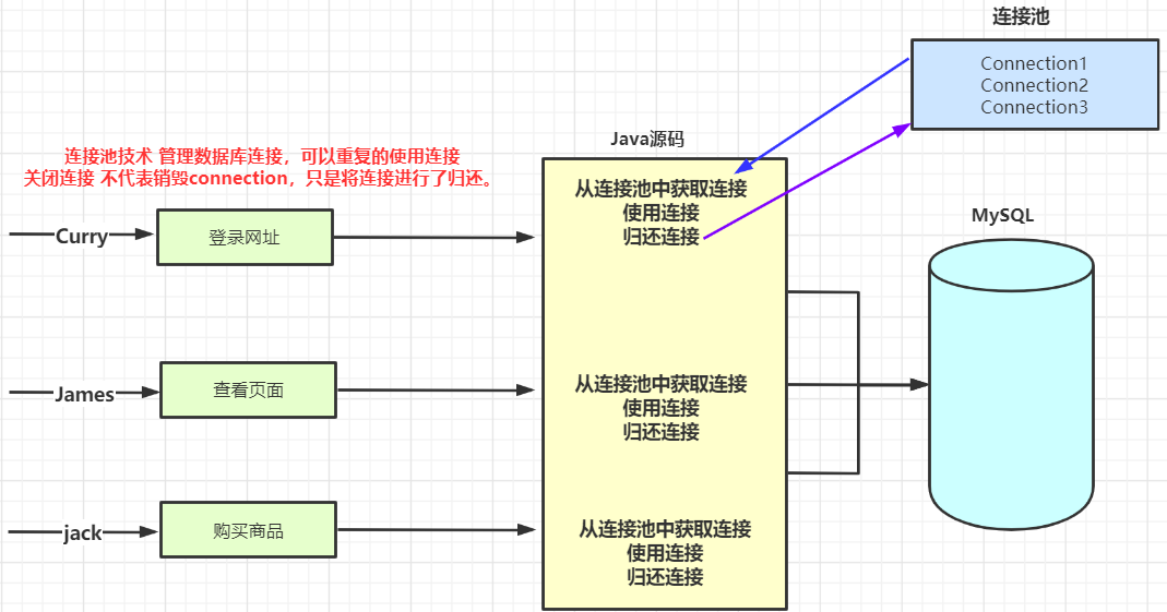 con.close(); // 将连接对象归还池中