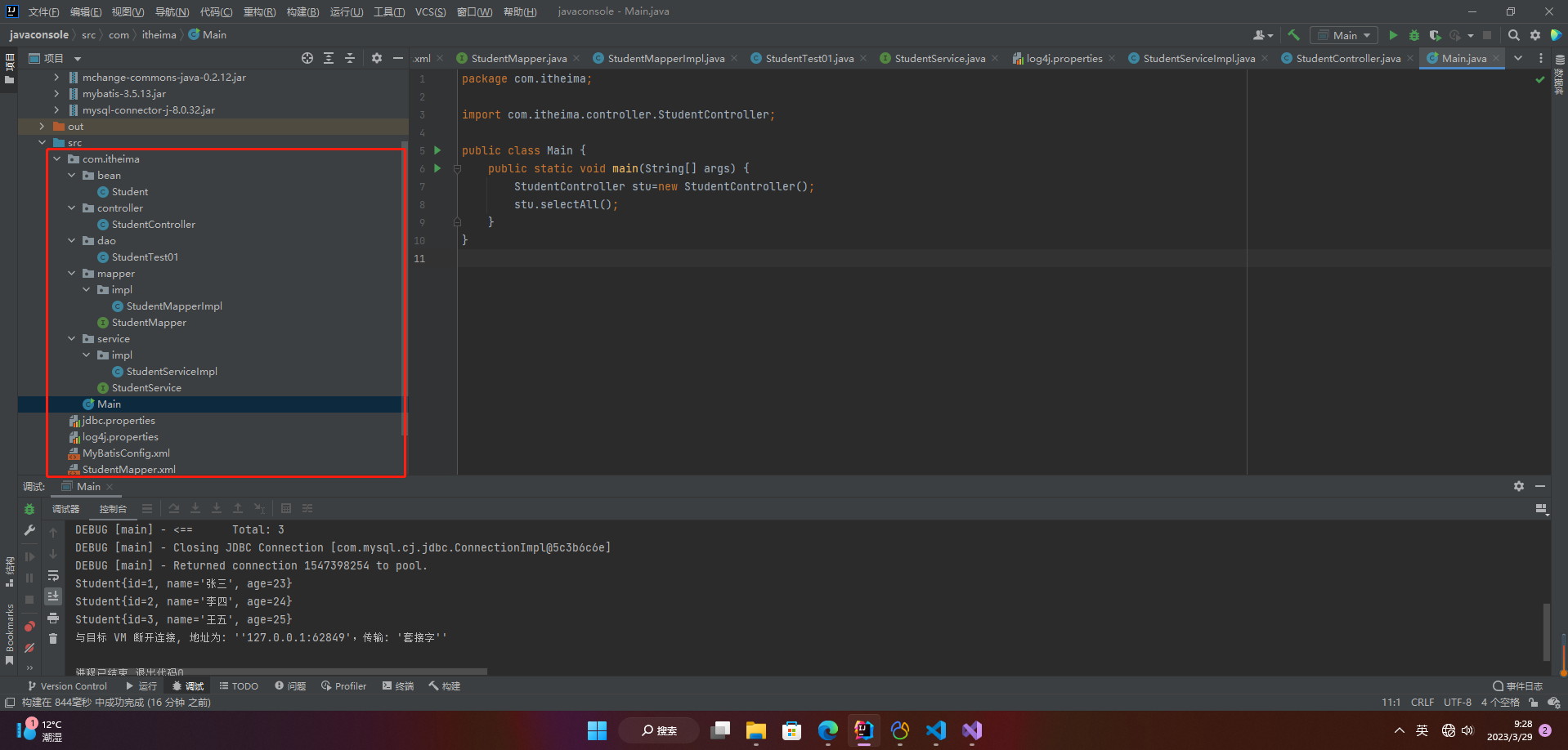 List<Student> students = service.selectAll();
