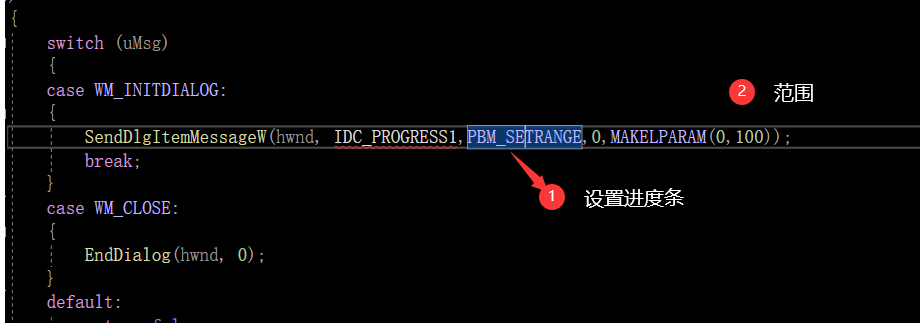 SendDlgItemMessageW(hwnd, IDC_PROGRESS1,PBM_SETRANGE,0,MAKELPARAM(0,100));