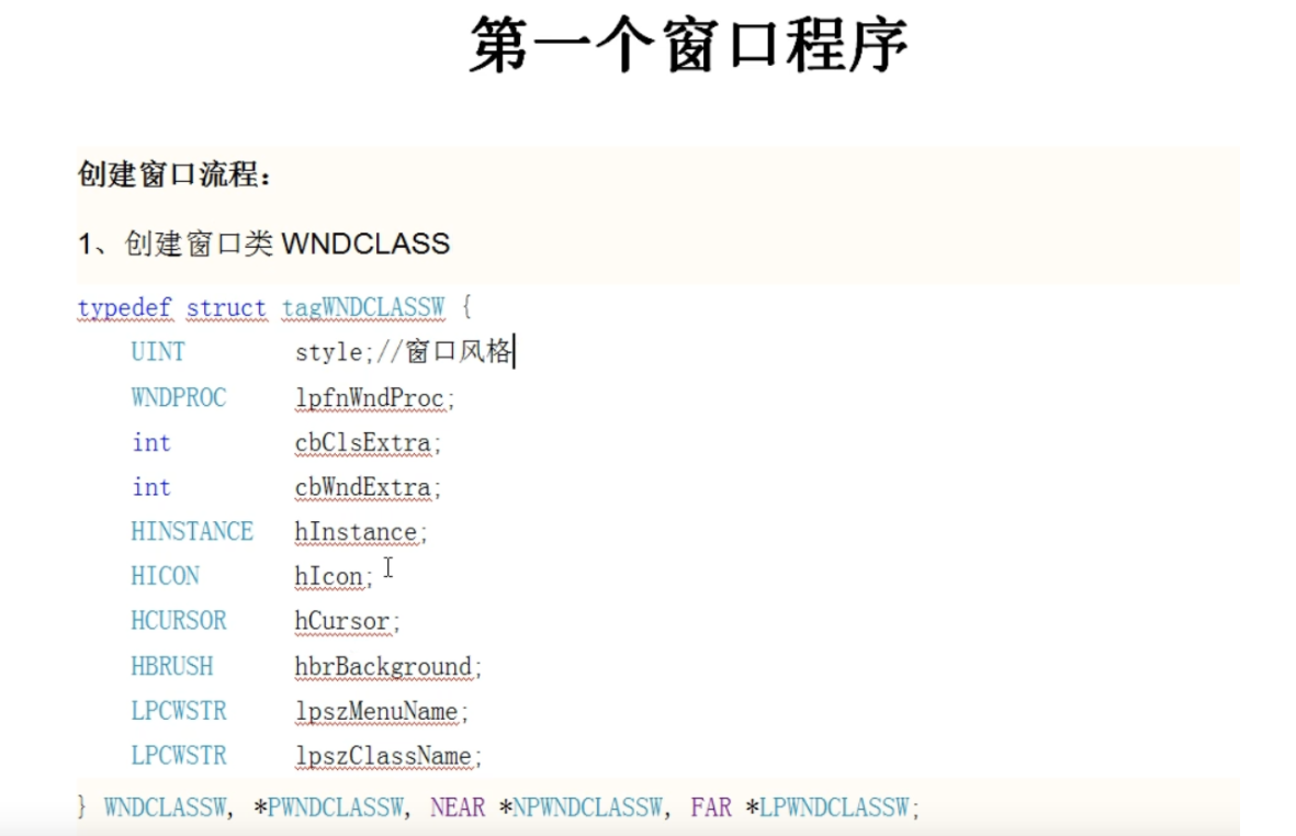 } WNDCLASSW, *PWNDCLASSW, *NPWNDCLASSW, *LPWNDCLASSW;