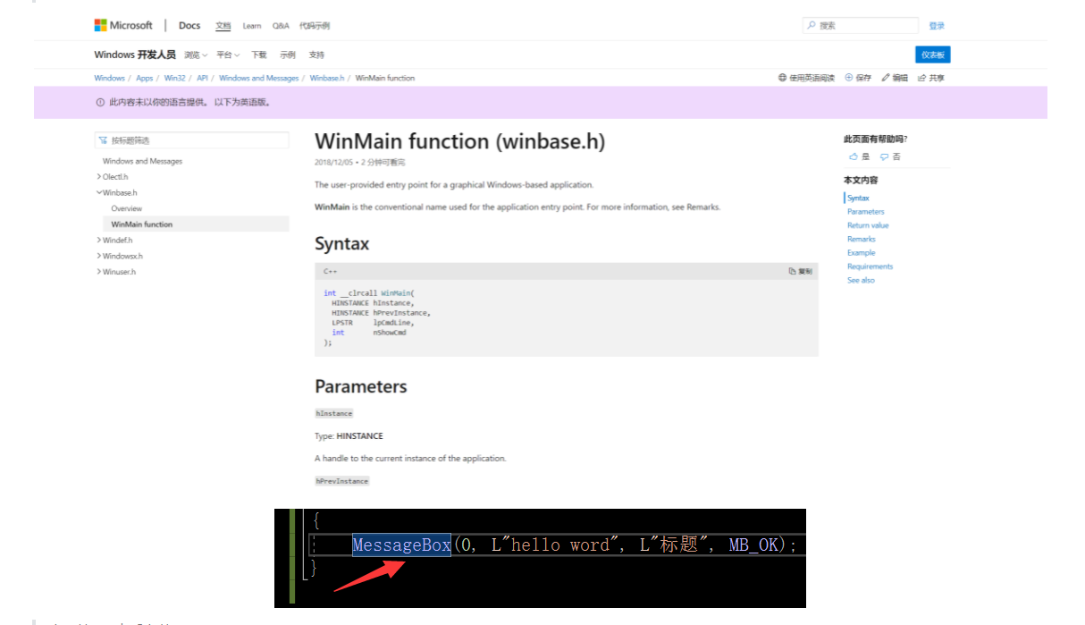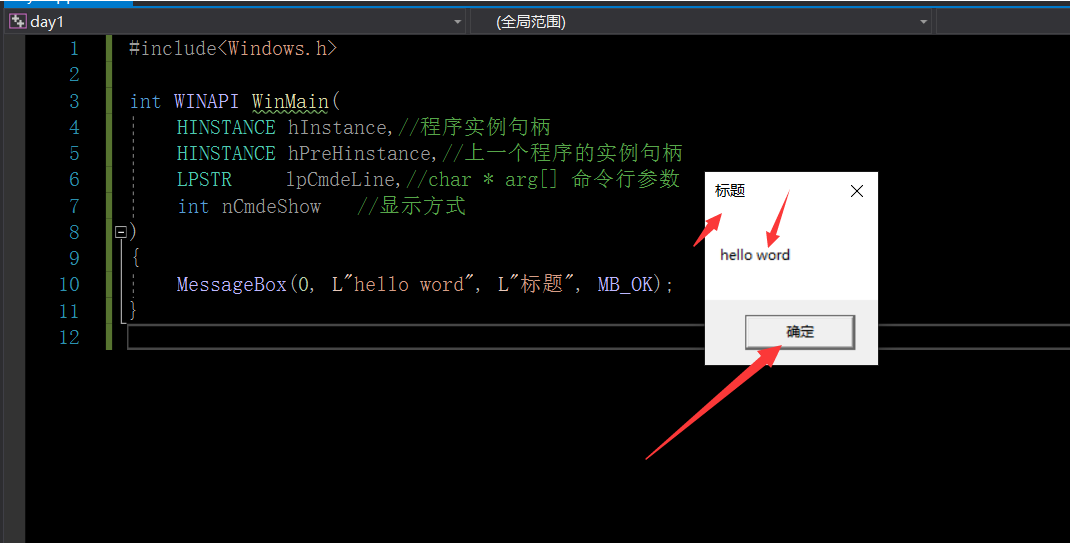 为什么hello word前面要加L 因为 创建项目的时候 默认是使用的WCHAR类型的字符集 不加L的话 使用的就CHAR类型的 不匹配 就会报错
