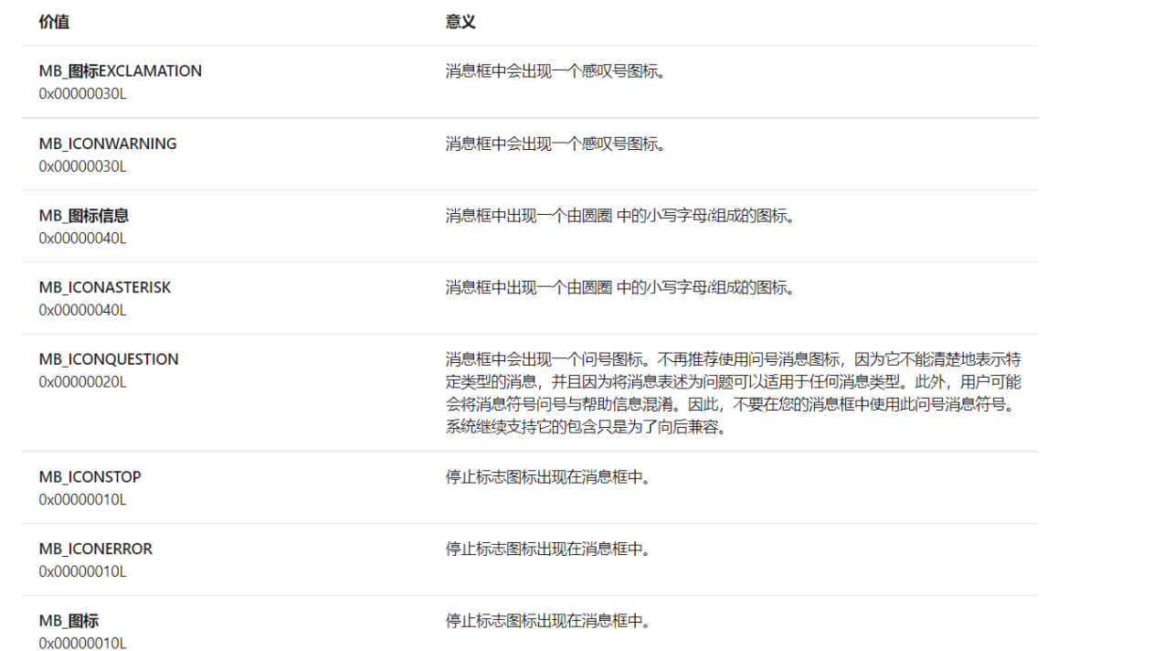 要在消息框中显示图标,请指定以下值之一。