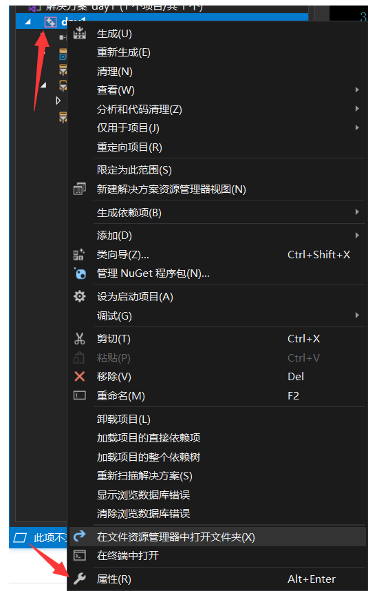 先右键点击项目 点属性