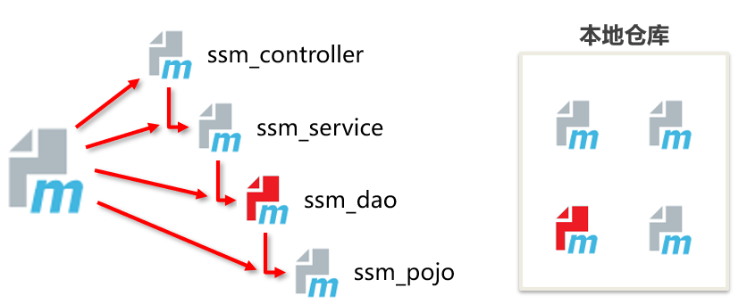 – 直接依赖ssm_pojo(对ssm_pojo模块执行install指令,将其安装到本地仓库)