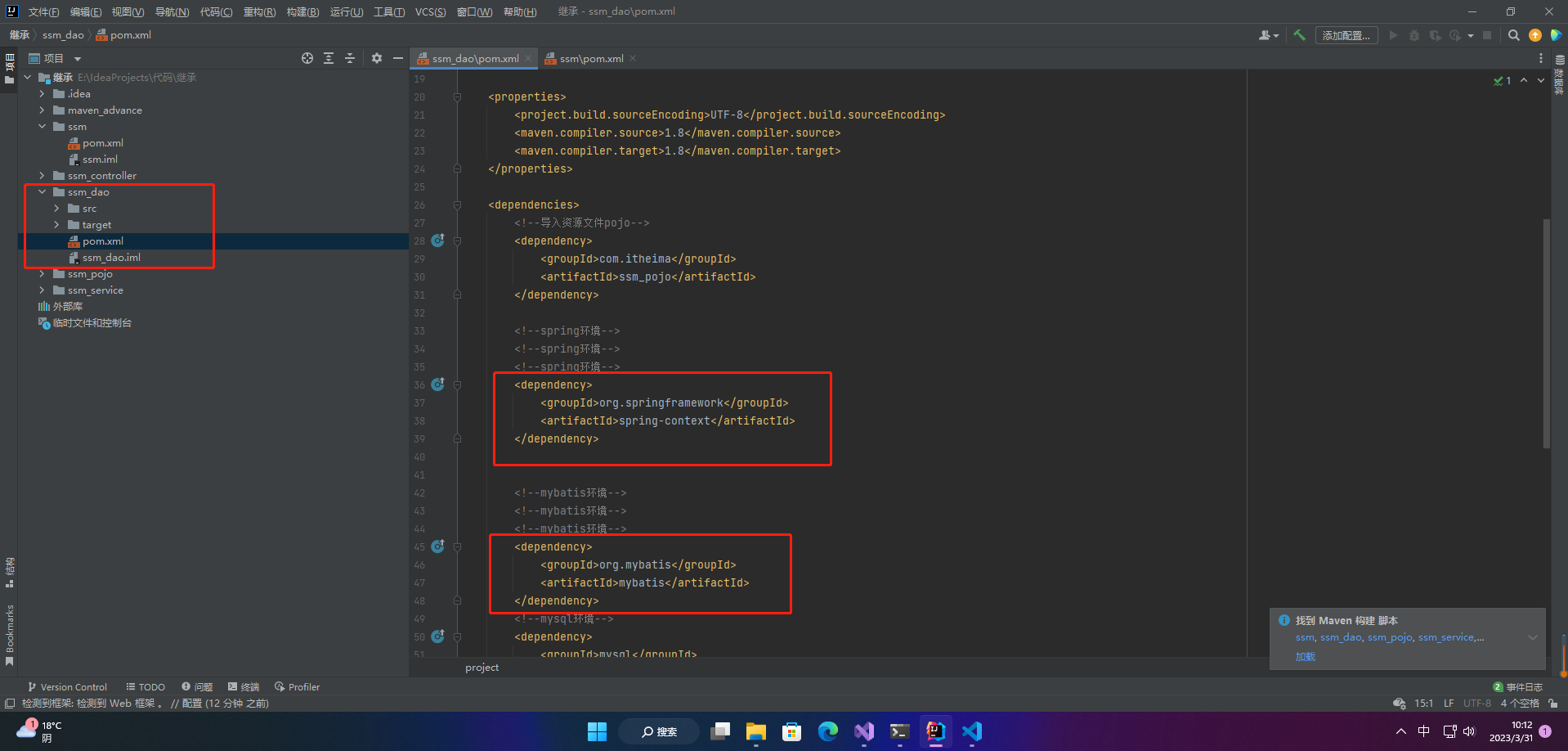 • 间接依赖ssm_dao、ssm_pojo
