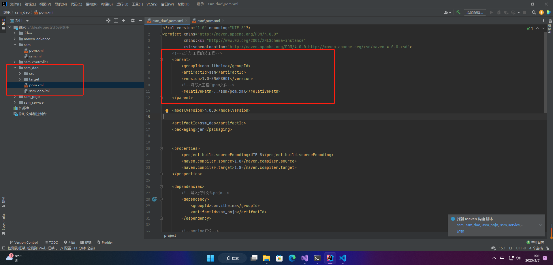 <relativePath>../ssm/pom.xml</relativePath>