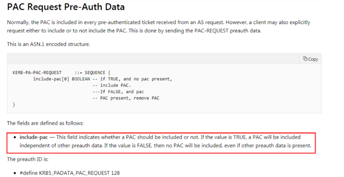也就是说设置了这个参数之后会向 KDC 申请一张不包含 PAC 的 TGT 票据,这是微软默 认的设计,在下列链接中有详细说明。 https://docs.microsoft.com/en-us/previous-versions/aa302203(v=msdn.10)#securityconsiderations