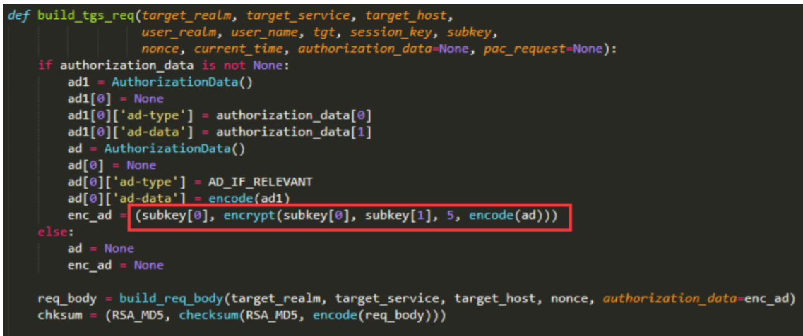 在build_tgs_req函数的参数中,authorization_data对应的为build_pac生成的pac。