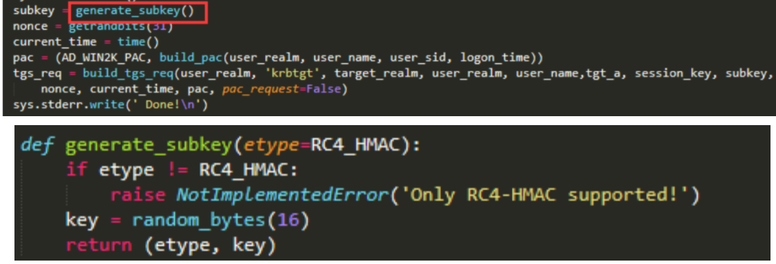 C、PAC的加密方式也可以由Client指定,并且Key的值为generate_subkey函数生成的16位随机数;
