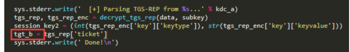 KDC在根据对伪造的PAC验证成功之后,返回给Client端一有新的TGT,并且这个TGT会将Pykek生成的PAC包含在其中,这里正常情况下返回的其实是一张用于发送给Server端做认证的ST票据。