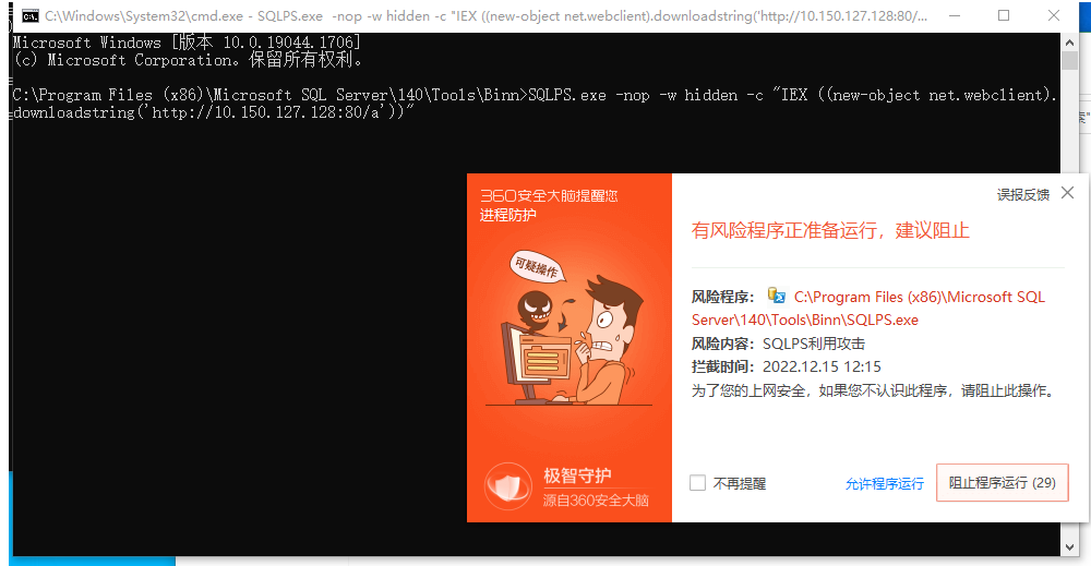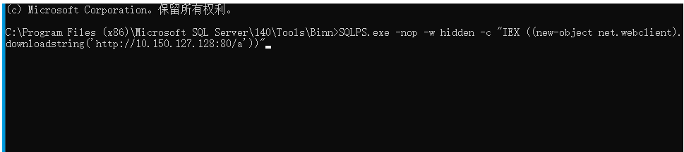 这里是换了一种加载powershell命令的方式和重命名了sqlps文件来进行的绕过 方式肯定很多 就不一一列举了