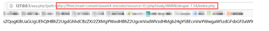 执行上述Payload会将D:/phpStudy/WWW/drupal-7.54/index.php文件以base64编码形式返回。