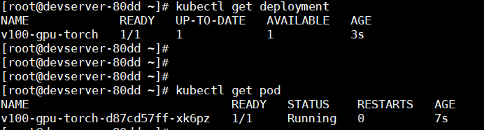 (3) 查看deployment和pod创建状态, 成功的状态如下: