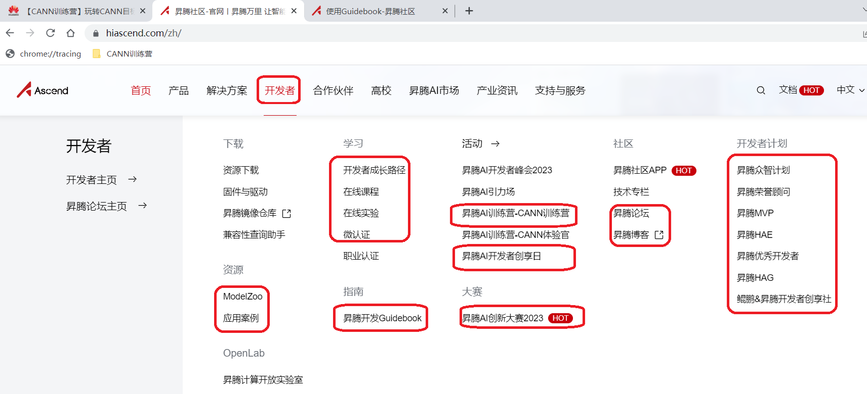 打开昇腾社区首页,你会发现“开发者”下面的内容越来越丰富。开发者成长路径、在线课程、在线实验,想学随时可以学,而且可以学好!