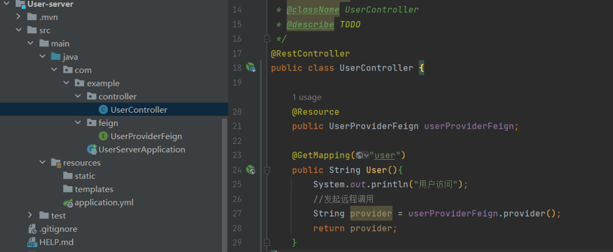 @FeignClient(value = "provider-server") //提供者的应用名称