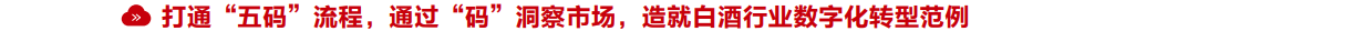 现如今“一物一码”在白酒行业中的应用日趋常态化,国内部署一物一码等相关项目的知名白酒企业超过1000家。传统“码技术”主要应用于消费者防伪验真,供应链质量跟踪和出入库管理等场景。汾酒集团也是白酒行业最早一批将“码”技术引入自身生产线、消费端、供应链等多流程的企业。十多年后的今天,汾酒集团积累了海量的“五码”数据,以“五码”为起点,探索并丰富五码数据价值,将消费者互动、渠道流向管理、生产工艺管理等功能重新融入进“五码”机制中。
