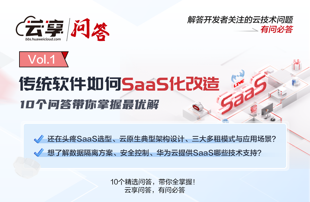 SaaS开发过程中的各种问题,如人力成本、多租户管理、高可用、安全性等,让企业在SaaS化转型时有所顾虑。华为云在长期的SaaS应用上云技术支持实践中,总结了企业在SaaS化转型时经常问到的问题,也是本期将为大家解答的内容。