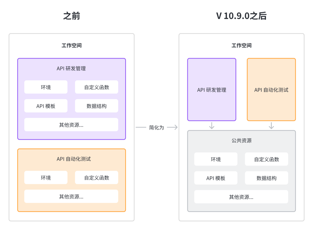 因此在 10.9.0 版本开始,我们将不同应用模块的公共资源整合在一起管理,让 API 管理、自动化测试等功能可以共用一套资源,希望可以尽可能降低用户的使用成本。