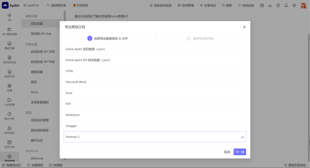 2.3 项目级导出支持导出为 Postman 格式文件