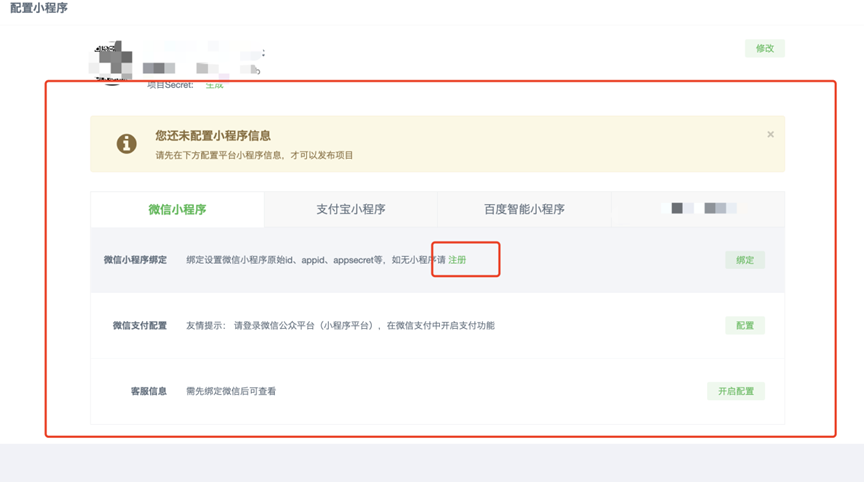 接下来进入小程序配置操作,分为微信端、支付宝端、百度端的配置
