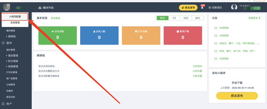 点击小程序配置,即可进入小程序配置页面