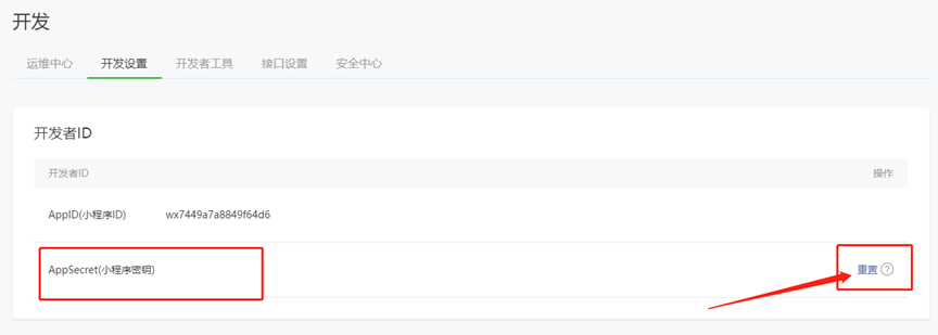 AppSecret: appid下方就是AppSecret,点击箭头所指的重置,进入重置步骤,把 复制下来保存,即可。