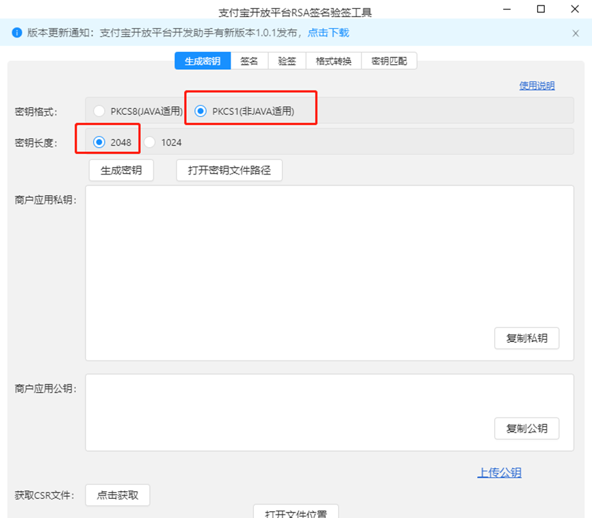 支付宝公钥、应用私钥生成请参考下方链接文档: