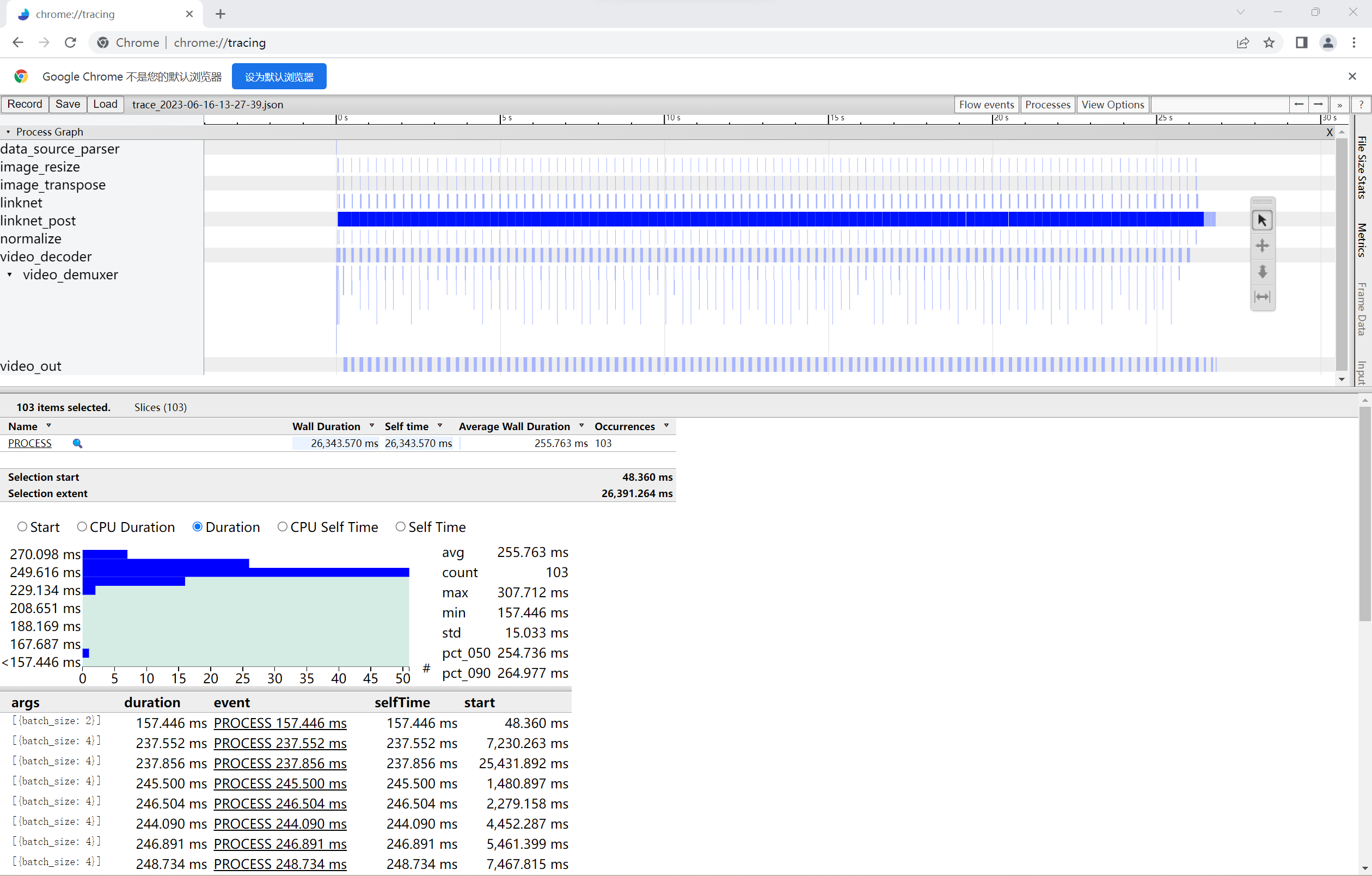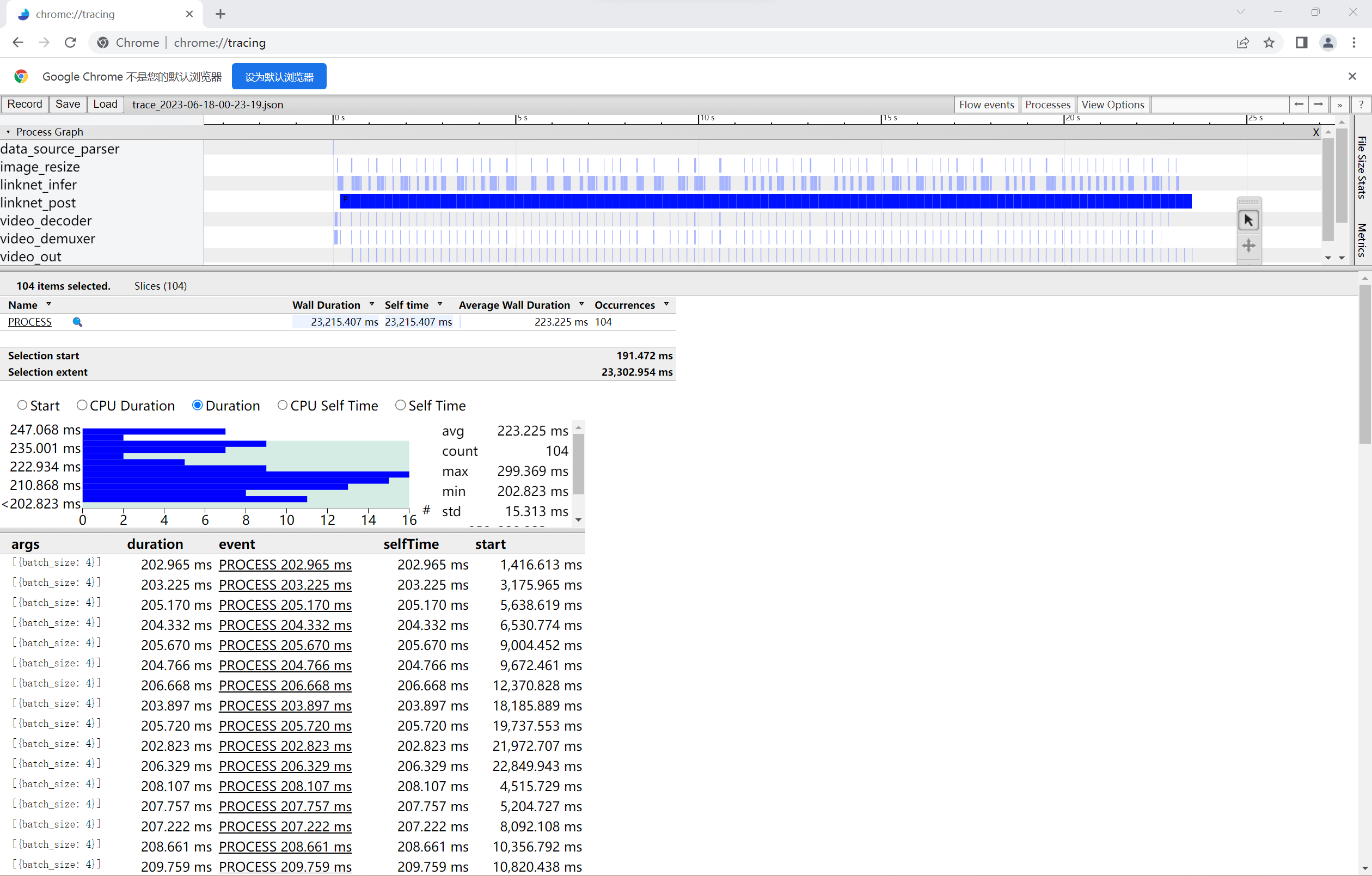 在Chrome浏览器chrome://tracing中加载性能统计文件: