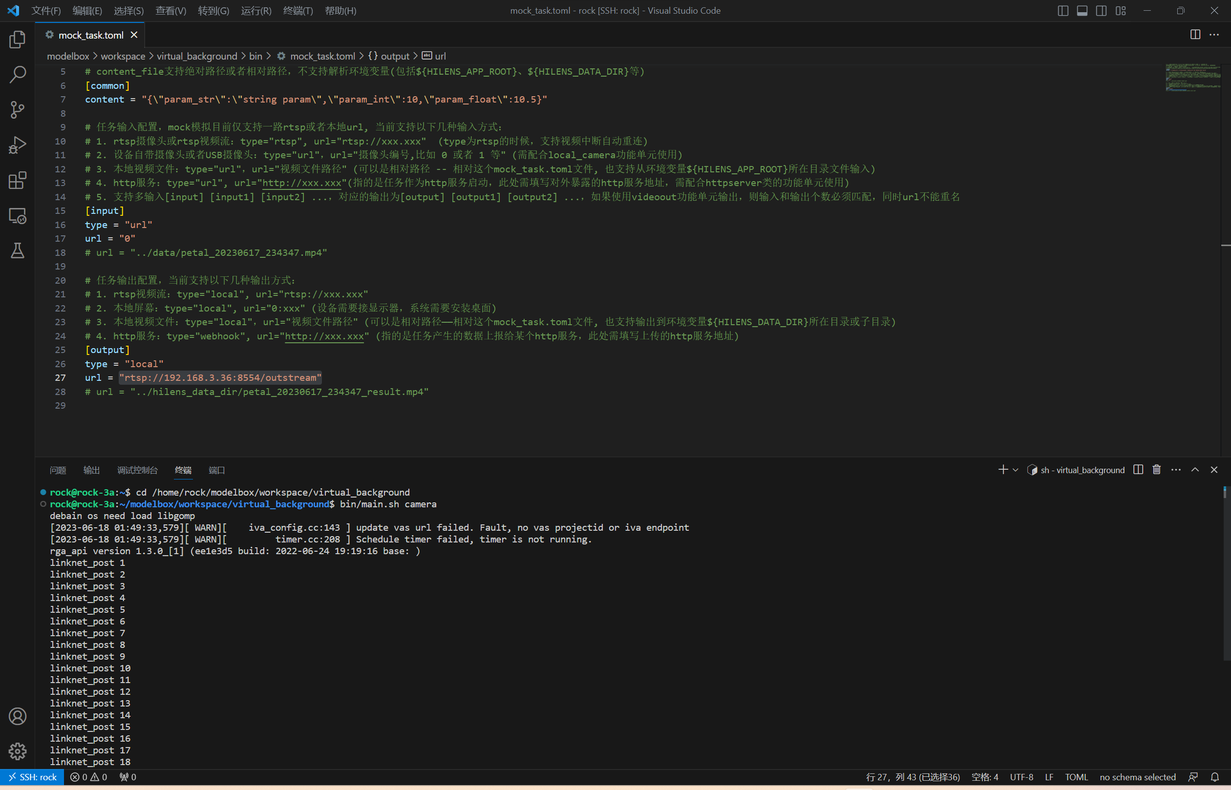 打开工程目录bin/mock_task.toml文件,修改其中的任务输入和任务输出,配置为如下内容: