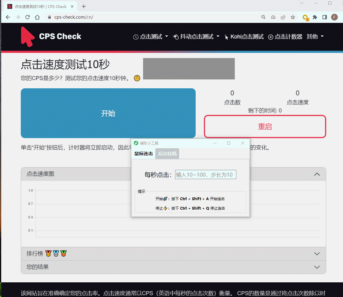 每秒点击次数,然后按下键盘的Ctrl + Shift + A即可;例如输入20,然后按下