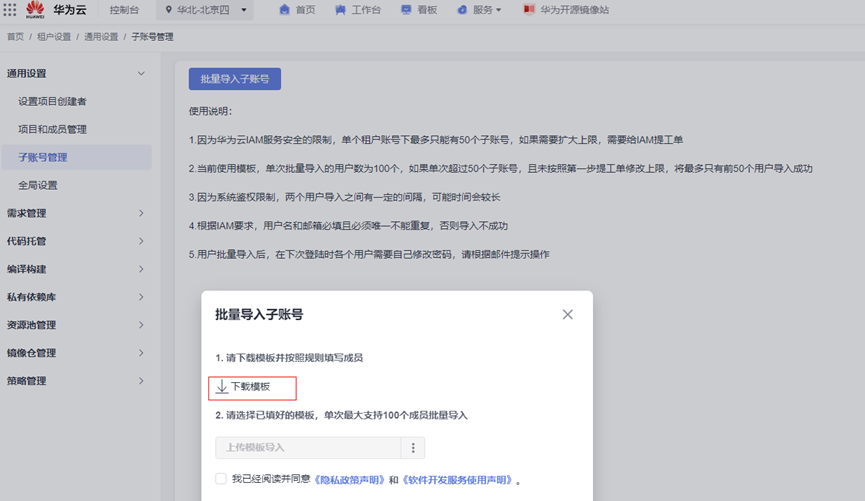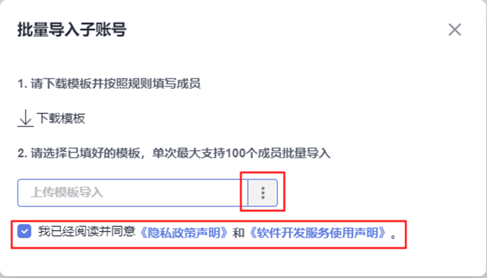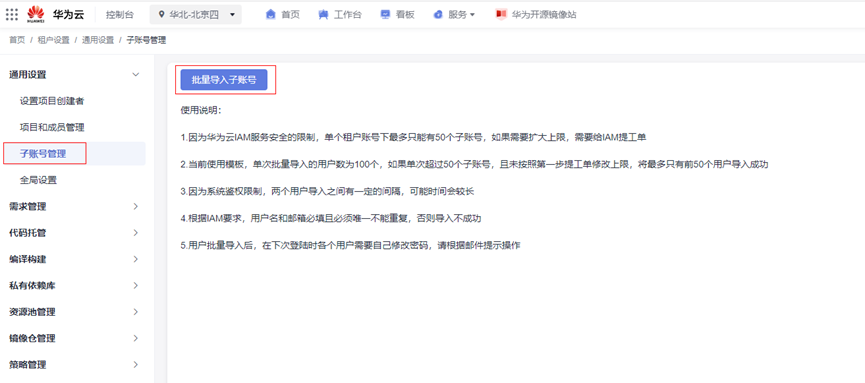 - 单击“批量导入子帐号”。