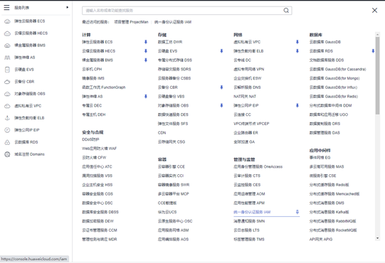 7.在控制台选择IAM服务,检查IAM是否已成功创建。