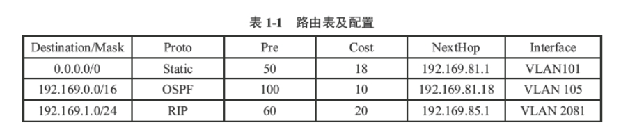 比如上表中,目的IP为192.169.1.111的报文进入后,3个项都匹配的,但第3个匹配的掩码长度是24,最长,所以选择它进行转发。