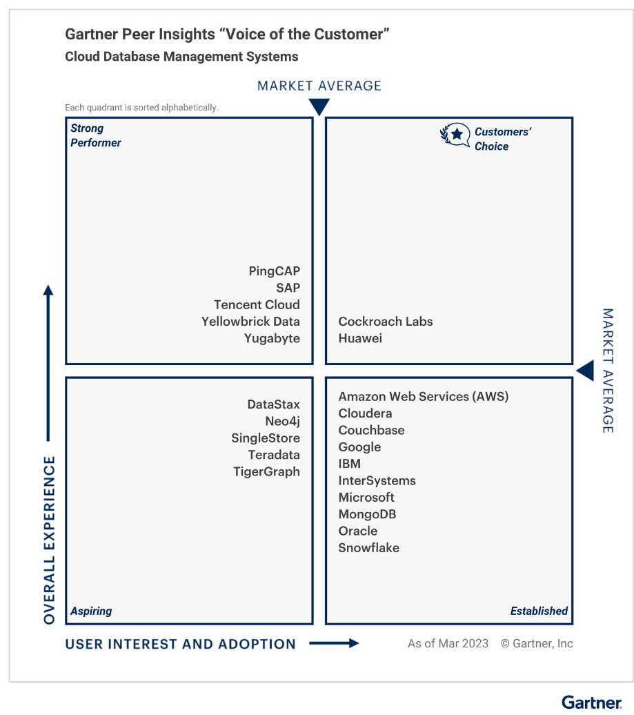 Gartner, Voice of the Customer for Cloud Database Management Systems, Published 29 May 2023