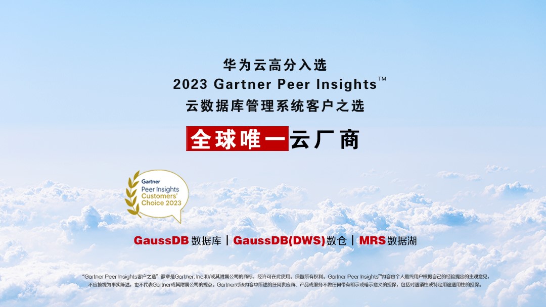 全球唯一云厂商!华为云高分入选2023Gartner Peer Insights™云数据库管理系统“客户之选”