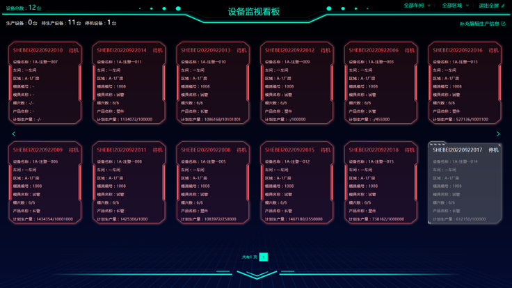 通过可视化面板,可实时查看注塑机器的生产状态、了解设备稼动率和使用率,以及能源使用情况,实现车间生产可视化管理与实时调度,打造标准化车间。