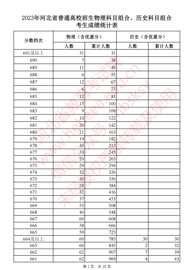 备注:以上数据包括2023年河北高考一分一段表的部分内容。