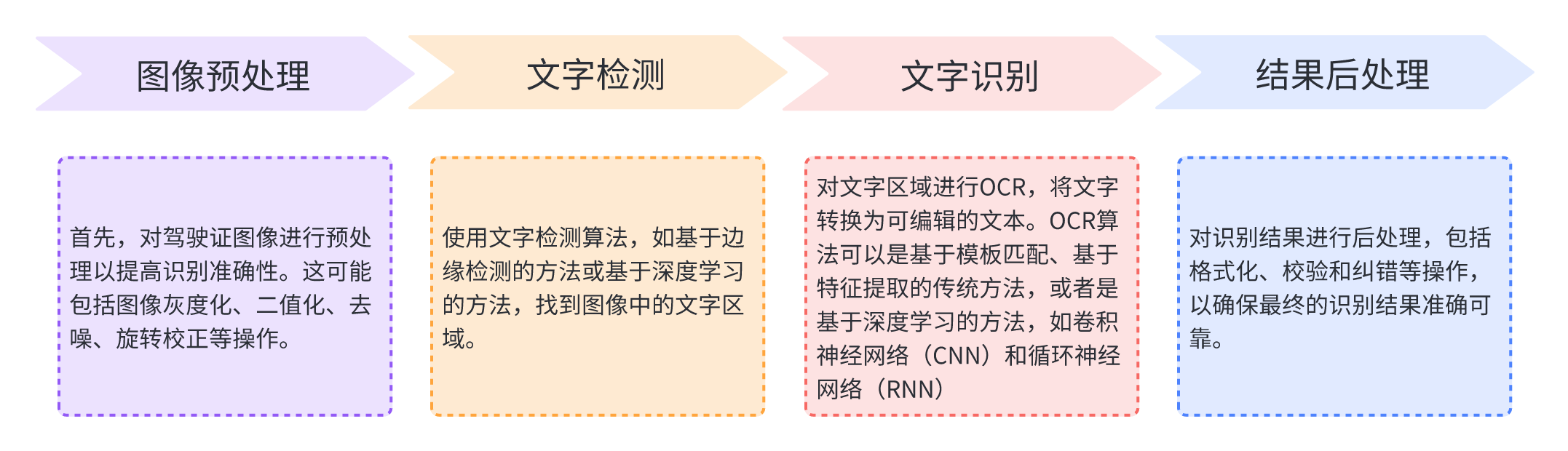 这些算法只是驾驶证识别OCR中的一部分,实际应用可能会结合多种算法和技术,以提高准确性和鲁棒性。此外,还有许多其他的算法和技术,如模板匹配、特征提取算法等,也可用于不同方面的OCR处理。具体选择和应用的算法将根据实际情况和需求来确定。