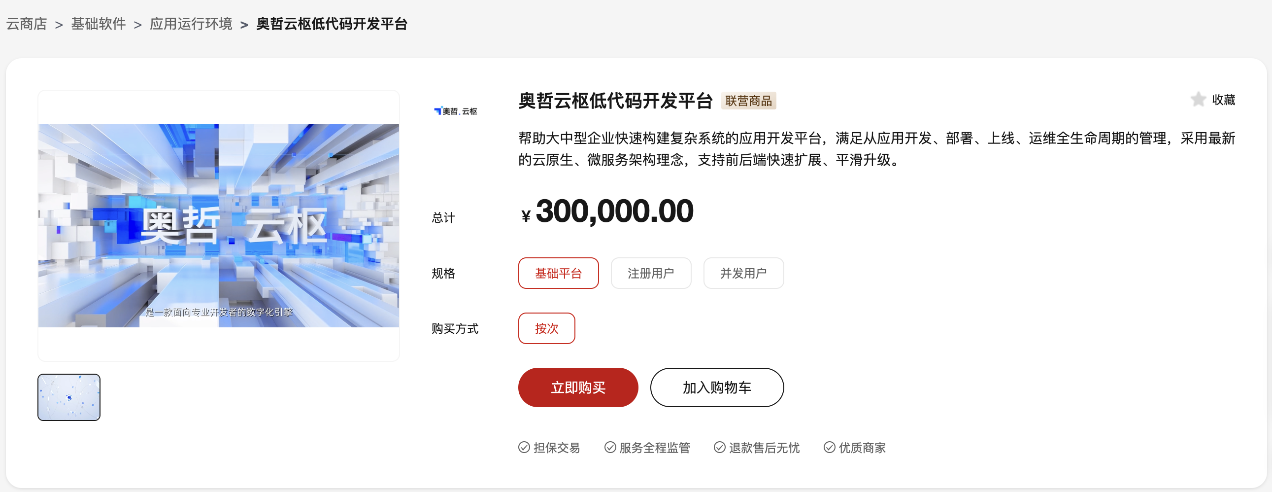 云商店秉承以客户为中心的主旨,不断整合上游伙伴的优质产品及服务,通过创新的“联营模式”集成并共创多场景解决方案,满足用户多样化的需求。针对联营商品,云商店统一制定严格的准入门槛,从源头严格把控提供软件和应用的服务商的技术、研发和服务实力,为用户提供优质的云上生态应用服务。