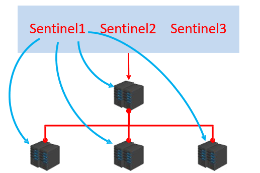 当sentinel认定master下线之后,此时需要决定更换master,那这件事由哪个sentinel来做呢?这时候sentinel之间要进行选举,如下图所示: