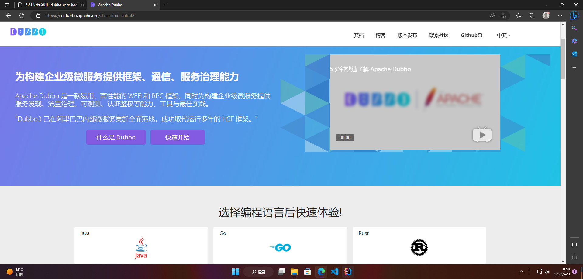 官网:https://cn.dubbo.apache.org/zh-cn/index.html