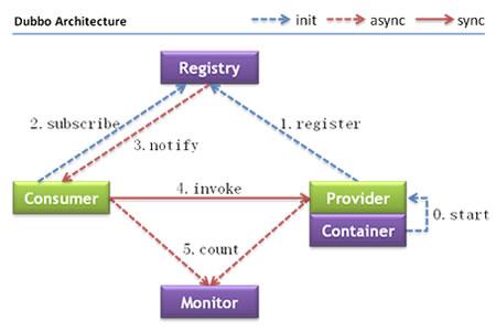 • 服务消费者,从提供者地址列表中,基于软负载均衡算法,选一台提供者进行调用,如果调用失败,再选另一台调用。