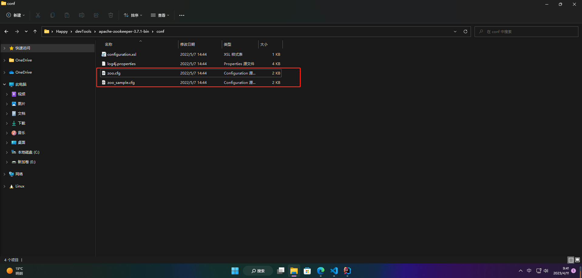 4、进入conf目录 ,把zoo_sample.cfg 改名为zoo.cfg